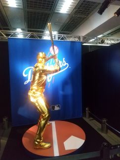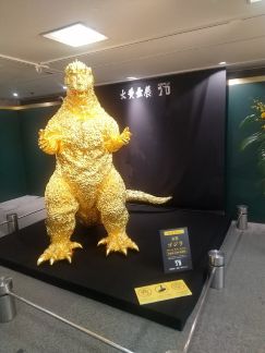 | 今月1日~6日まで横浜高島屋で開催された「大黄金展」。 最終日の一昨日、横浜に行ったついでに大谷翔平選手等身大の黄金像を見てきました。 初日の除幕式には栗山英樹さんも出席してテレビでも大きく取り上げられてました。 「大黄金展」と関係ないけど、ベイスターズのユニフォーム姿の ローズちゃん(高島屋のマスコット) 5500万円! ドジャースのユニフォームを来た男性に撮影を頼まれて、3ポーズ撮らされました(笑)。 大谷選手の黄金像は他の展示と別のスペースにありますが、 入場無料なので会場内に入ってみました。 大谷選手の小型サイズの純金製フィギュアとメダル、ベイスターズのデザインの小判も 展示されてましたが、写真撮影OKなのは大谷選手の黄金像と 高さ2メートルの金箔ゴジラだけでした。 なかなか迫力ありました。 |