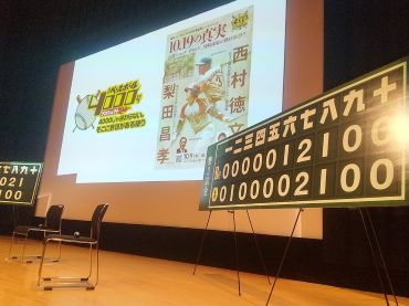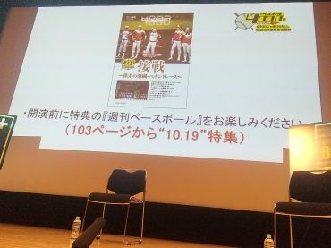 | 今日も週刊ベースボール4000号記念トークイベントに行って来ました。 第3回目のゲストは梨田昌孝さん×西村徳文さん。司会は前回と同じく上重聡さん。 今回の会場は虎ノ門ヒルズ駅近くのニッショーホール。 今回のテーマは“10.19の真実”。 1988年10月19日 近鉄バファローズの優勝が懸かった川崎球場でのロッテ vs 近鉄 伝説のダブルヘッダーです。 2試合のパネルが展示されてました。 会場内も開演までは撮影OKでした。 席は1階最前列のほぼ中央! 当時は中日ファンでしたが、幼稚園か小学生低学年の頃 生まれて初めての プロ野球観戦がナゴヤ球場での近鉄 vs ロッテだったので、このカードには愛着がありました。 人気のカードとは言えなかった両チームの対戦でしたが、黄金期の西武とデッドヒートを繰り広げてた 近鉄の優勝を懸けた1日への注目度は高くて、川崎球場は超満員、第2試合の途中から ニュースステーション枠内で全国放送されて関東で視聴率30.9%・関西では46.7%を記録。 現役最後の日になった近鉄・梨田昌孝さんと、ロッテの1番セカンドで2試合ともスタメン出場してた 西村徳文さんの37年後の証言は貴重でした。 複数球団で監督を務められたお二人なので、もっと色んな話を聞きたかったような気もするけど、 パ・リーグの歴史を変えた中身の濃い2試合を当事者が語り尽くす今回のテーマも 凄く良かったと思います。 2004年に近鉄球団は消滅、ロッテも1992年に千葉に移転、ダブルヘッダーも日本では1999年以降 1度もないので、色々懐かしかったです。時間制限のある延長戦も当時ならではのルール。 2日前に完投してたエース阿波野投手がダブルヘッダーで2試合とも登板したのも 今ではあり得ないです。 2連勝したら近鉄が優勝の状況で迎えた最下位ロッテとのダブルヘッダー。 梨田さんの代打決勝打で第1試合勝利した近鉄ですが、第2試合は大熱戦の末に無情の引き分け。 延長10回表に近鉄の勝ちを消す併殺打の処理をしたのが二塁手の西村さんでした。 翌1989年は近鉄が見事優勝しました(が、巨人との日本シリーズは3連勝のあと4連敗で 日本一にはなれず)。 川崎球場でのダブルヘッダーの話が中心でしたが、特に梨田さんはメジャーリーグネタなど 色んな話題を挿入してくれて楽しかったです。 |