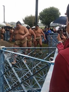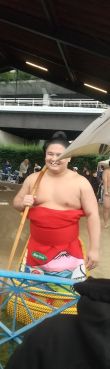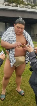 | ちびっ子vs関取の取組も楽しかったです。 神奈川の強豪・旭丘高校相撲部員もずっといました。 全員で記念撮影。 蒼富士による相撲甚句。 伯桜鵬・熱海富士・尊富士も合いの手で参加してたので貴重な光景でした。 初切も見たかったけど、伯桜鵬関と尊富士関が土俵を離れて即席サイン会が 始まってたので、そちらに移動しました。 伊勢ヶ濱親方は帰り際にもう少しのところでサインして貰えず… (熱海富士関は以前サインして貰いました)。 横須賀出身の蒼富士も人気ありました。 行った甲斐がありました。 横浜に土俵を寄贈してくれて出張稽古まで開催してくれた伊勢ヶ濱親方に感謝です。 |