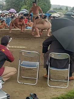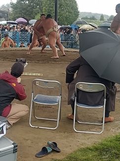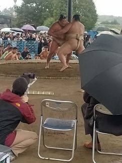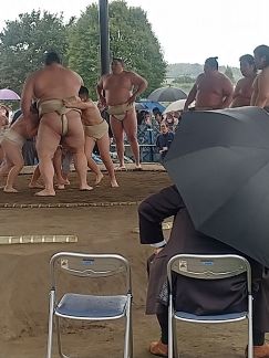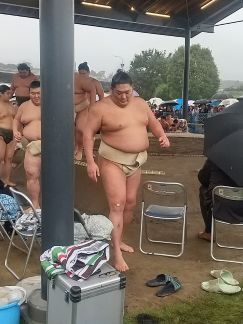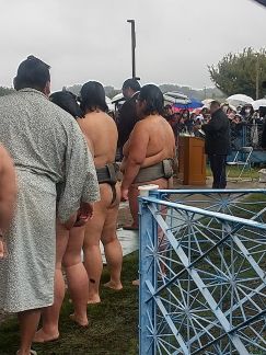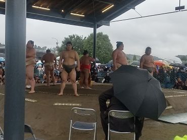 | 伊勢ヶ濱親方(第73代横綱 照ノ富士)と後援会が寄贈した新横浜公園相撲場で 伊勢ヶ濱部屋の出張稽古があったので行って来ました。観覧無料です。 伊勢ヶ濱親方・伯桜鵬関・熱海富士関・草野関が参加予定でしたが、 草野関は欠席で尊富士関が急遽参加になりました。 雨で寒かったけど、ちびっこ相撲体験参加の小中学生50名(+保護者の方)以外の 一般客もたくさん来てました。 伊勢ヶ濱親方の挨拶 力士紹介。幕下以下の力士もほとんど神奈川出身。 関取同士の申し合い稽古はやはり迫力ありました。 |