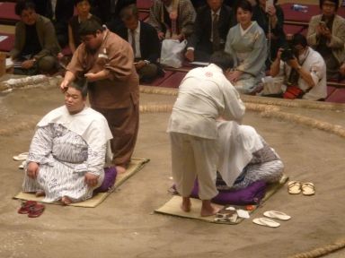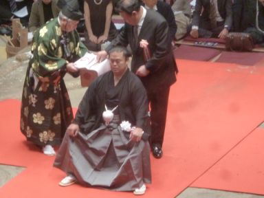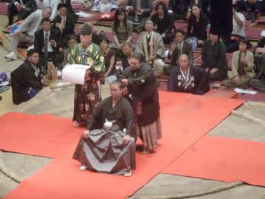 | 第74代横綱 豊昇龍 第75代横綱 大の里 西ノ龍関 佐田の海関 平戸海関 山科親方 (元幕内 豊響) 関ノ戸親方 (元小結 岩木山) 最後の髷姿を目に焼き付けました。 止めバサミは師匠の境川親方(元小結 両国) 妙義龍改め振分挨拶 お母様に花束贈呈 娘さんから花束贈呈。家族で記念撮影。 横綱綱締め実演 第七十四代横綱 豊昇龍 |