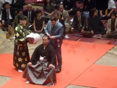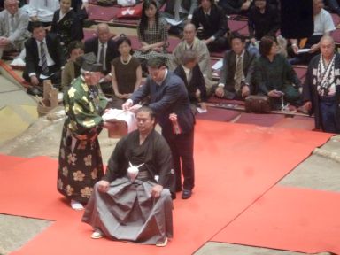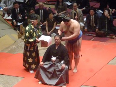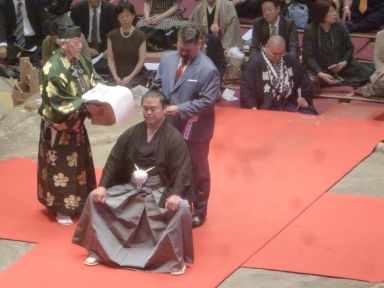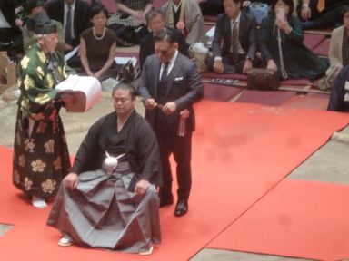 正代関 若隆景関 藤島親方 (元大関 武双山) 石塚英彦さん 断髪式 介添 : 四十三代 式守伊之助 埼玉栄高校相撲部 山田道紀監督 春日野親方 (元関脇 栃乃和歌) 藤島親方 (元大関 武双山) 雷親方 (元小結 垣添) 武隈親方 (元大関 豪栄道) 岩友親方 (元関脇 碧山) 井筒親方 (元幕内 明瀬山) 錣山親方 (元小結 豊真将) 湊川親方 (元大関 貴景勝) 見れたのは貴重でした。 スマホよりズームが効くのでデジカメも手放せないんですが、レンズのしみが目立ってきて、 湊川親方の目のあたりにレンズのしみが重なってしまいました… (次の中村親方の口のあたりも)。 中村親方(元関脇 嘉風) 大山親方(元小結 北勝富士) 千田川親方 (元幕内 徳勝龍) 千代翔馬関 大関 琴櫻関 |