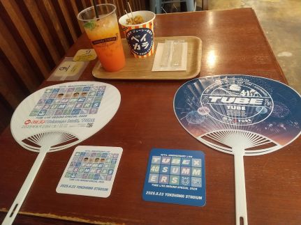 | いよいよ明日TUBEの横浜スタジアム公演です。 前夜祭は残念ながら中止になってしまいましたが、今日も有休取ってたので グッズ買いに行って来ました。 整理券は14時配布予定でしたが12時半ぐらいから配布してたそうです。 朝から並んでるという情報を見たので、夜勤明けでしたが早めに出発して13時過ぎに到着しました。 整理番号は最終的に2300番ぐらいまであって、19時半以降は 整理券なしでほとんど並ばずに買えたそうなので、遅い時間に行った方が 良かったかも。今日完売した商品もなさそう。 日本大通りにあるCRAFT BEER DINING &9 に行きました。 隣のショップは入った事ありましたが、レストランは初めて入りました。 普段はベイスターズファンで賑わうお店ですが今日は大半がTUBEファンでした。 店内のBGMもずっとTUBE。 今日と明日配布されるTUBEのコースター目当てでしたが、うちわも 再び貰えました(ステッカーは終了)。 「シーズン・イン・ザ・サンライズ」と「ベイカラ ~湘南My Love~」を注文。 どちらも美味しかったです! 2枚余ったので明日久しぶりにお会いする事になった御姉妹に渡します。 うちわは横浜スタジアムでのライヴの1週間前(今回は12日前)から配布するので、 地の利を生かして毎年早めに貰いに行けるんですが、コースターはライヴ当日配布なので 地の利に甘えて家を出発するのがいつも遅めでお店入る余裕はないから 貰えた事なかったです。コースター2種類ともゲット出来て嬉しいです。 明日、ここでTUBE友 数名とお会いする予定です。 今回もパンフレットの販売がないのは残念ですが、オールTUBEの新聞の発売は嬉しいです。 お金預かってたので頼まれてたグッズも全部無事に買えて良かったです。 明日は高校野球決勝戦をテレビで見てから出発します。 |