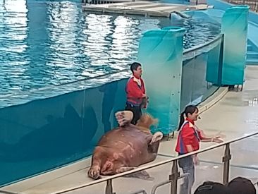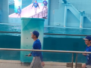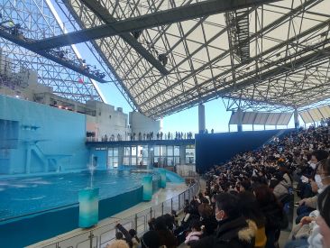 | ベイスターズ2026初春の集いのチケット当選者は1000円引きで水族館の入場券買えるんですが、 当選者限定チケット優待販売のお知らせメールを見逃してしまって水族館は結局通常価格で 入りました…。 11時からのイルカ(たちの)ショーを見ました。 気付けば満席! 八景島のイルカショーはかなり久々でしたが楽しかったです。 12時からシロイルカの水中パフォーマンスを見ました。 席は埋まってて立ち見でしたが見れて良かったです。 |