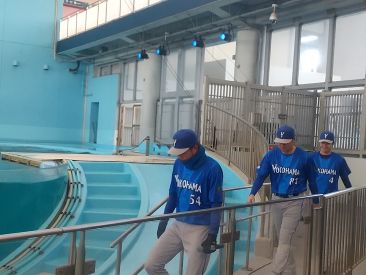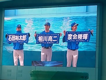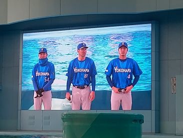 | 新ビジターユニフォームお披露目と新シーズンスローガン発表を兼ねた ベイスターズ新春の集いが八景島シーパラダイス アクアミュージアム ライブスタジアムで 昨日行われました。チケットは抽選販売で完売したそうなので当選して良かったです。 1500円(+水族館代)で、自分の場合は交通費もかからないので有難いイベントでした。 出演は相川亮二監督、地元・横浜高校出身の度会隆輝選手、磯子区出身の石田裕太郎選手。 DB.スターマンも登場。 3時間ぶりにアクアミュージアムに。 席は端の方でしたが2列目でした。 勿論満席です。 イルカもずっと活躍してました。 撮影OKでした。 石田選手、相川監督、度会選手 新ビジターユニフォーム 新デザインのタオル |